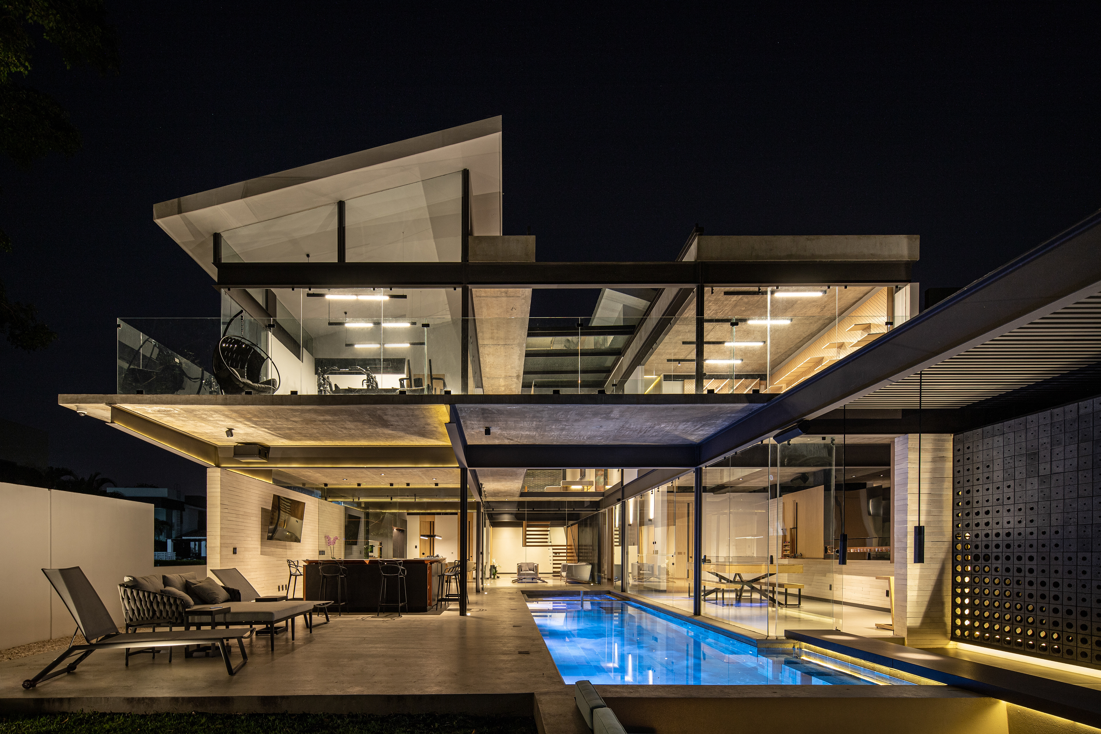 The upper floor visually levitates from the ground floor thanks to the projection of a horizontal strip which gives a gesture of lightness in the general volumetry; The intimate area and other family activities are located on said floor; The relationship between this floor and the rear façade of the house was resolved by strategically locating areas such as the gym, living room and study. The materiality of the house is achieved through the dialogue generated by the integration of natural finishes, raw tones with the contrast and warmth offered by wood; Thus achieving together an ideal balance of form, function and materiality.